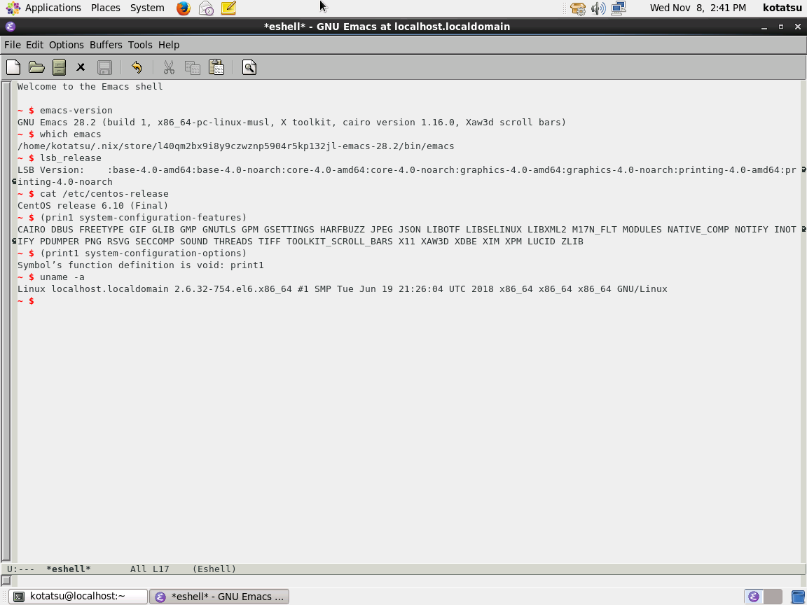 It occurred to me that maybe I can stretch Nixpkgs’s support to these old, offline systems—and it turned out to be easier than I imagined. It did require some thought and wrestling, but in the end I’ve succeeded bootstrapping Nixpkgs for the x86_64-unknown-linux-musl system up to a fully functional Emacs 28.2 on an offline CentOS 6 machine without root.